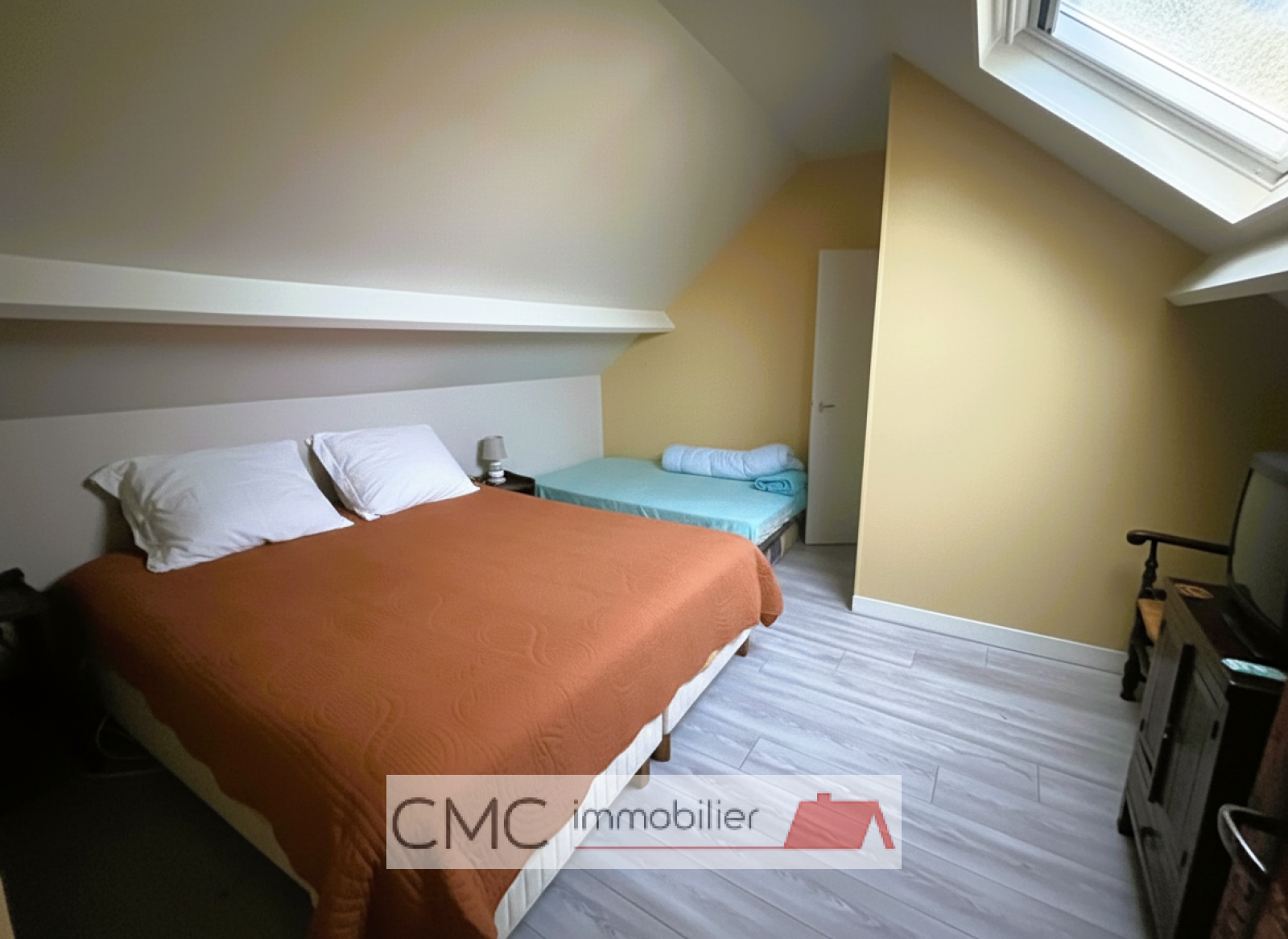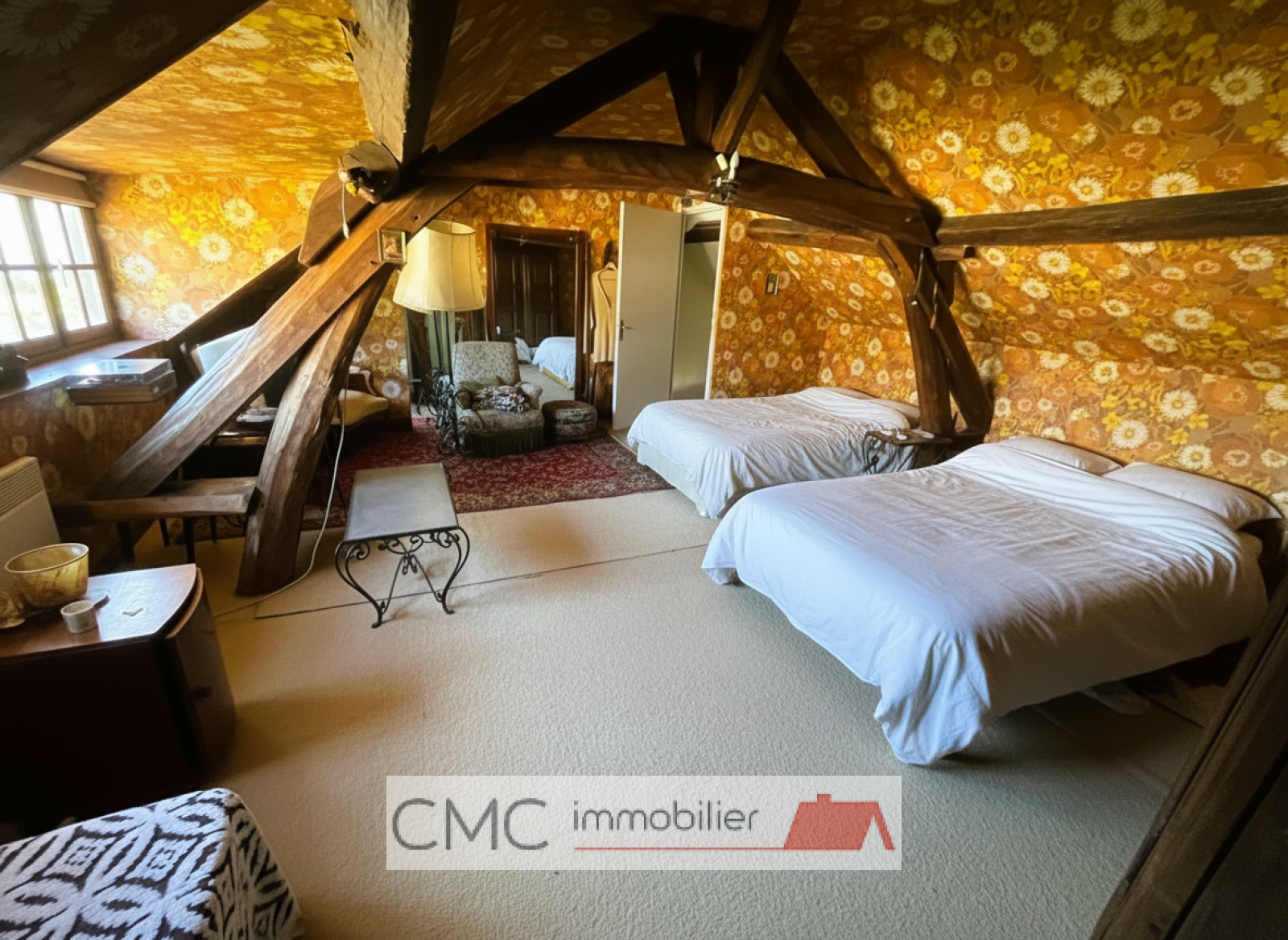 Vous trouverez également une chambre au rez-de-chaussée, ainsi qu’une seconde à l’étage. Par un second escalier, une pièce palière dessert deux chambres supplémentaires, offrant de beaux volumes et de nombreuses possibilités d’aménagement. Le tout sur un terrain clos, sans vis-à-vis, d’environ 430 m². Garage et dépendance complètent ce bien.